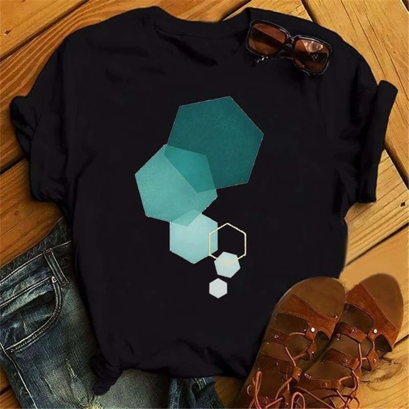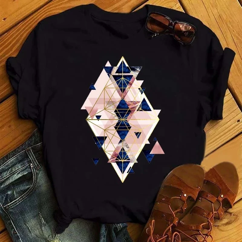 Женская Винтажная футболка с геометрическим принтом, в стиле Харадзюку 90-х