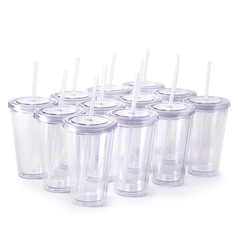 Многоразовые Дорожные Кружки для холодного кофе объемом 16 унций22 унции, изолированные прозрачные пластиковые тумблеры с крышкой и соломинкой, 1 шт., 3 шт., 12 шт.компл.