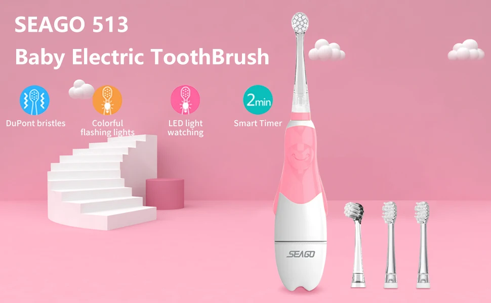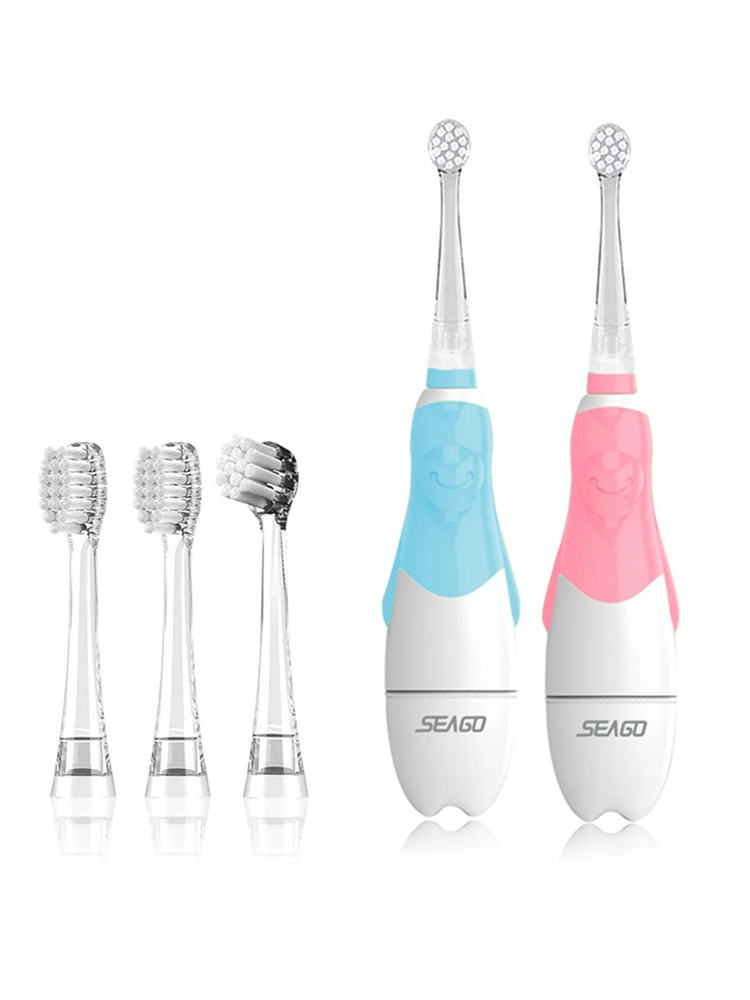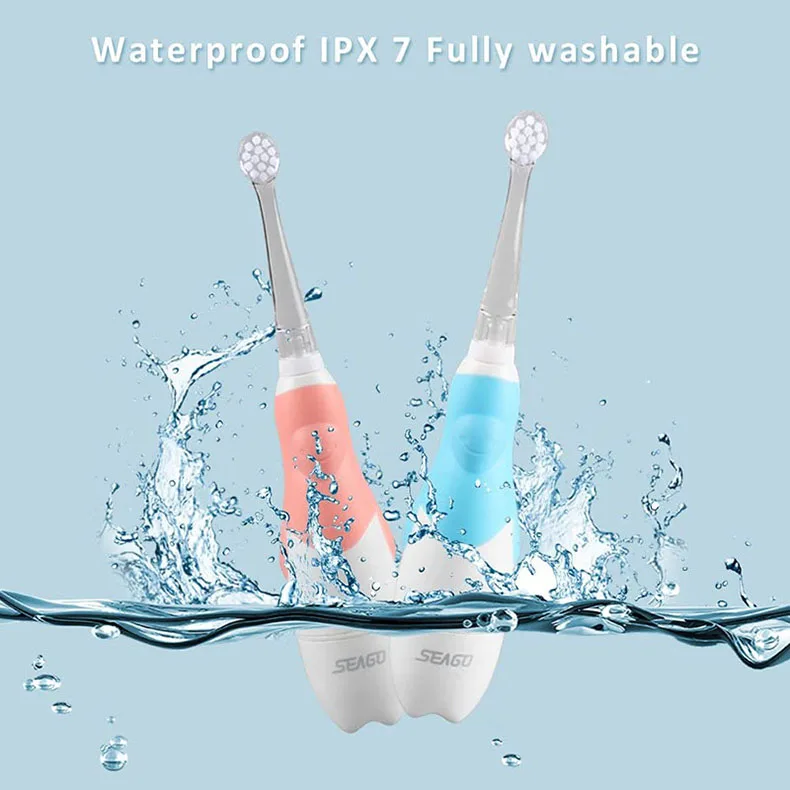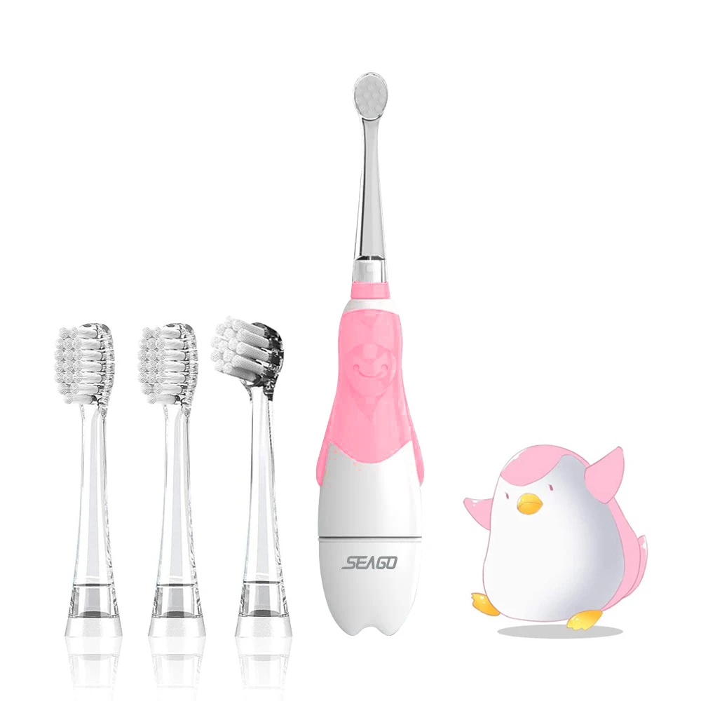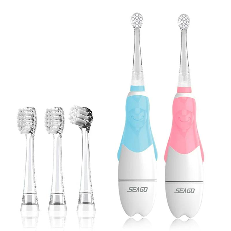 Seago детская Ультразвуковая электрическая зубная щетка для детей Батарея Мощность для От 0 до 12 лет Детские Смарт-таймер Водонепроницаемый + 4 мягкие насадки для зубной щетки