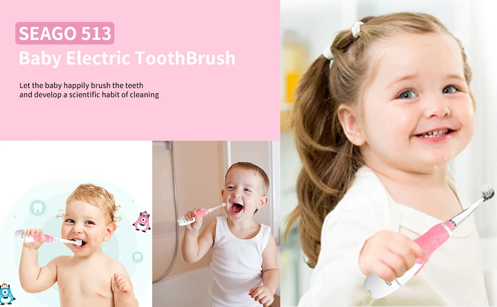 Seago детская звуковая электрическая зубная щетка, Детская батарея, мощность для От 0 до 12 лет, умный таймер, водонепроницаемый + 4 мягкие насадки для щеток