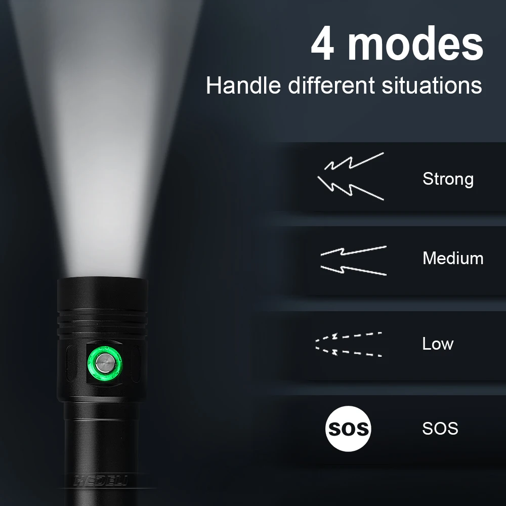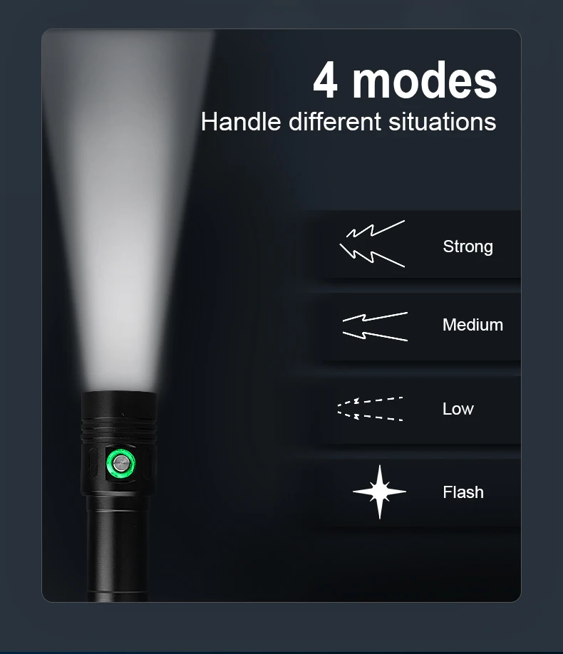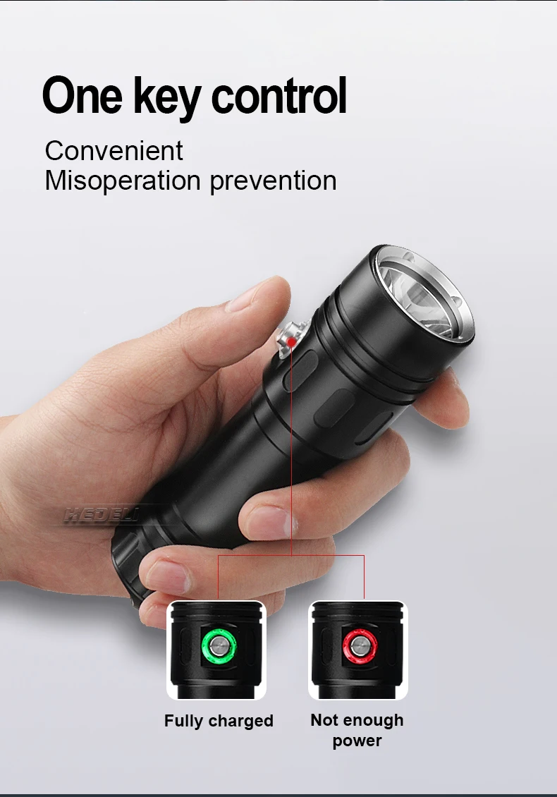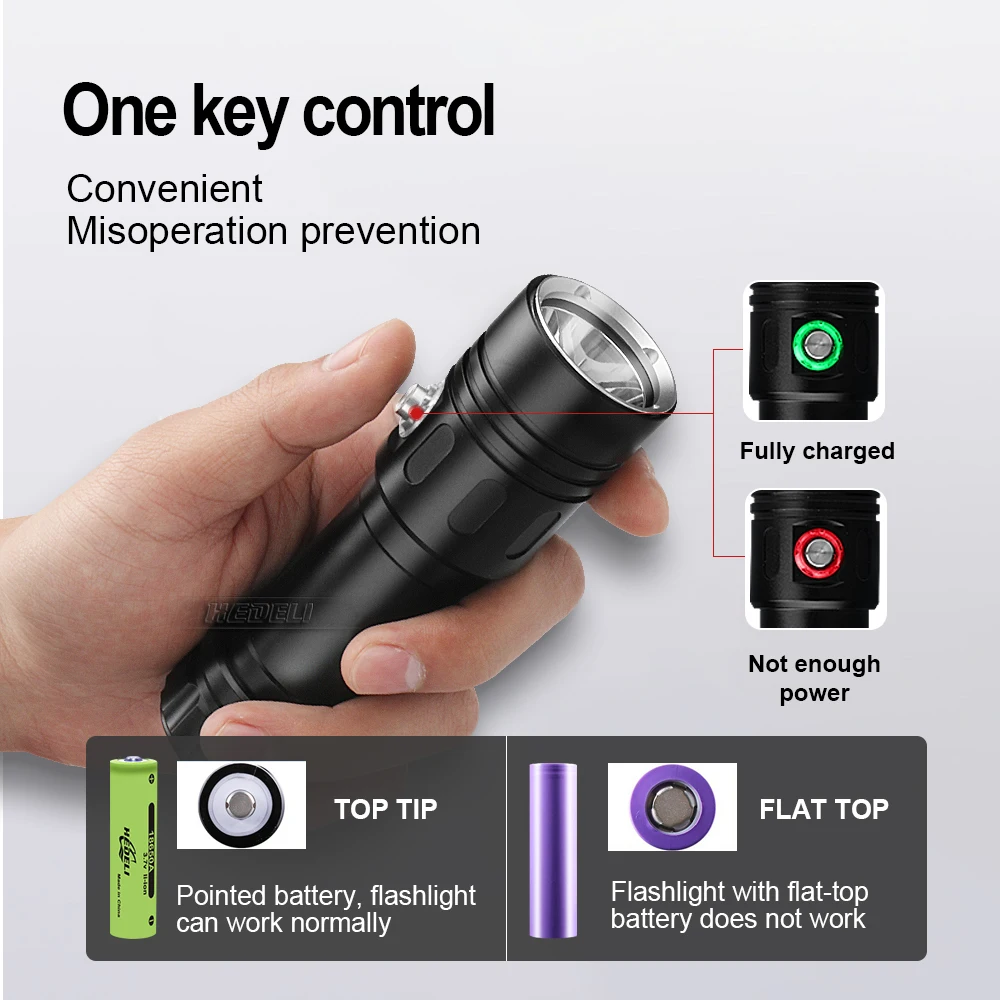 Особенности1. Используйте лучшие лампы XHP50.2/XHP50/L2, непрерывный срок службы до 100000 часов.2. Используйте 1*18650 или 1*26650 перезаряжаемый аккумулятор, длительный срок службы батареи.3. Четыре режима: (сильный, средний, слабый, мигающий), вы можете переключить требуемый режим в различных средах.4. Водонепроницаемый Профессиональный светодиодный фонарик IPX8 для дайвинга позволяет нырять так сильно, как вам нравится.5. Он принимает авиационный алюминиевый сплав и Цельнометаллический корпус технологии производства с числовым контролем, который имеет высокую прочность и вес светильник; Он не боится падения, не боится давления и долговечен.6. Он используется для различных видов спорта на открытом воздухе, таких как дайвинг, альпинизм, кемпинг, туризм и т. д.