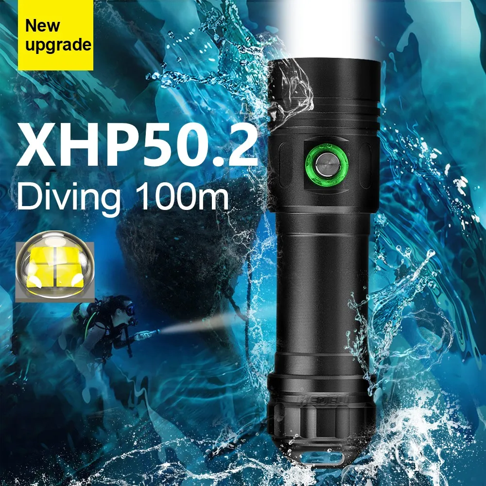 Светодиодный фонарик XHP50.2, мощный профессиональный фонарик для дайвинга, 18650 перезаряжаемые подводные лампы, IPX8 водонепроницаемый фонафонарь для дайвинга