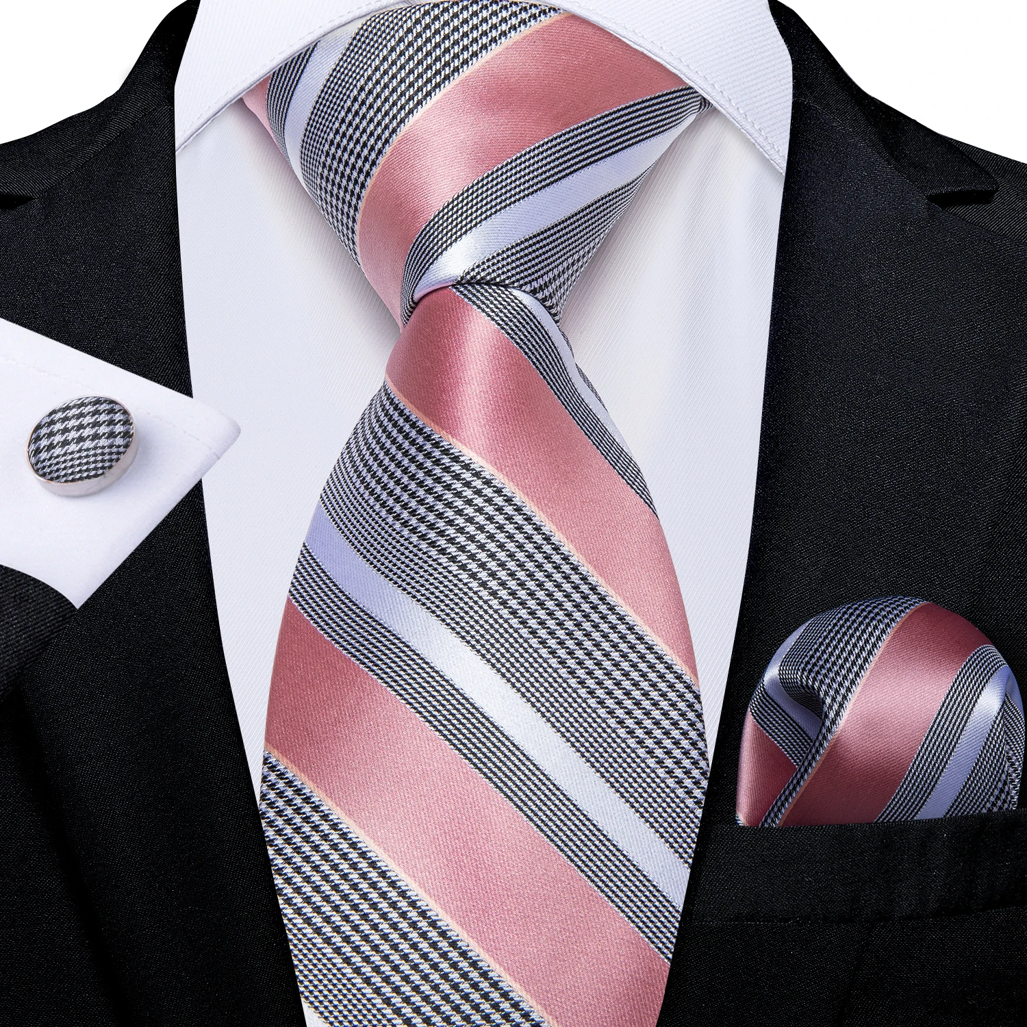 Галстук мужской, в розовую и синюю полоску, для бизнеса, свадьбы, Карманный платок, запонки, кольцо для галстука, подарок для мужчин, Gravata DiBanGu