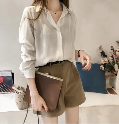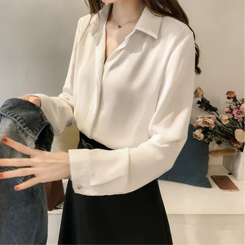 Женская блузка, рубашка, женская осенняя одежда, шифоновая белая рубашка, деловая рубашка, блузы, женская одежда