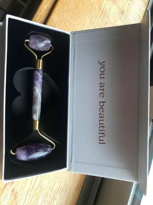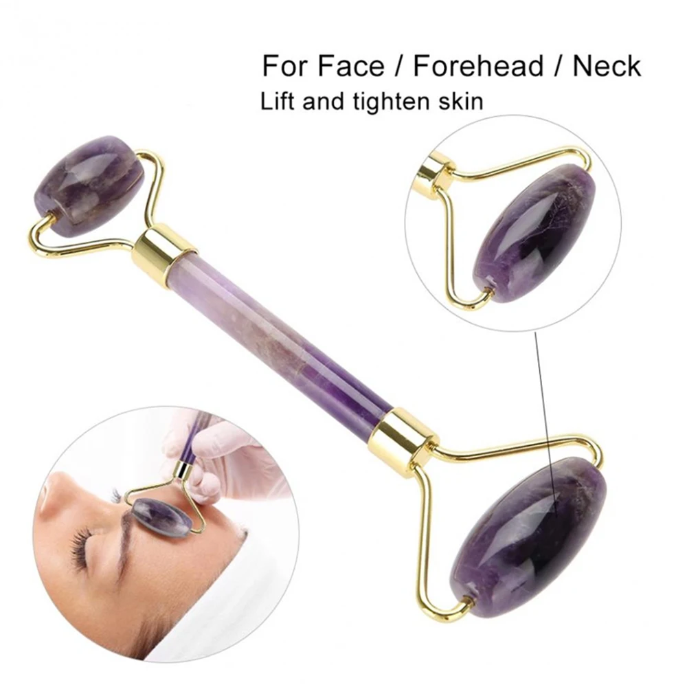 Набор роликов массажных из натурального аметиста и нефрита, массажер для лица, для похудения, подтяжки подбородка и ухода за кожей лицевой валик для красоты