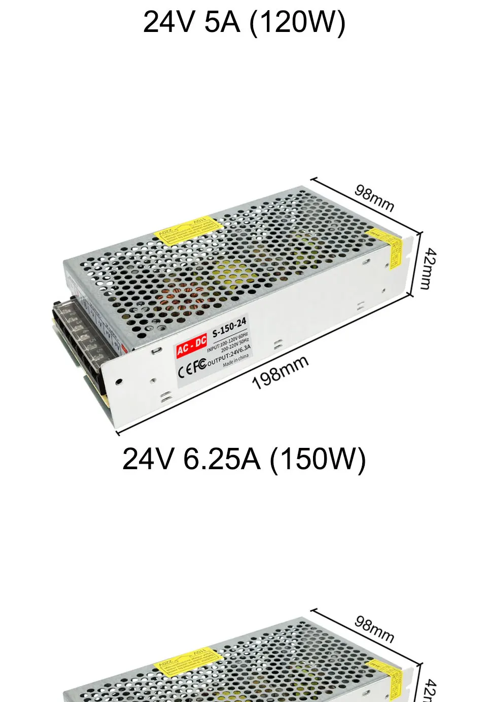 Источник питания для светодиодных лент, трансформатор переменного тока в 12 В, 24 В постоянного тока, 10 Вт, 50 Вт, 100 Вт, 150 Вт, 200 Вт, 1 А, 2 А, 3 А, 4 а, 5 А, 6 А, 8 А, 10 А, 12 а