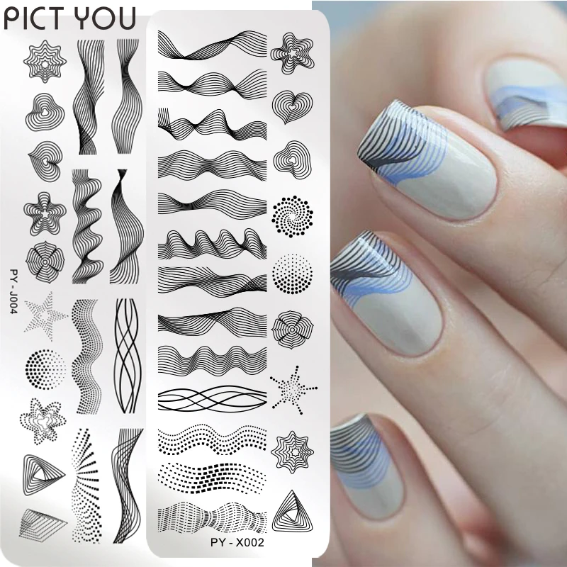 Пластины для стемпинга PICT YOU прямоугольные из нержавеющей стали, геометрический дизайн, шаблон для создания изображения ногтей, инструменты для ногтей