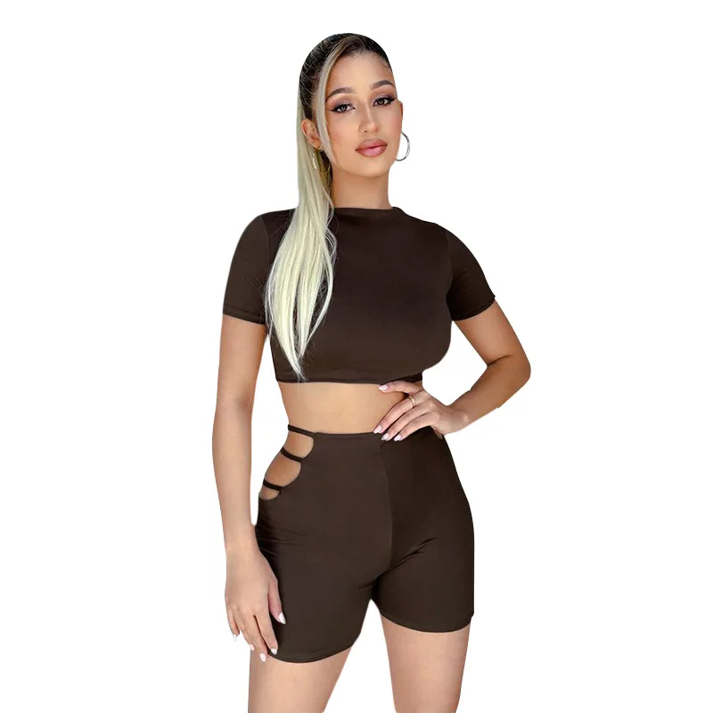 Женский спортивный костюм из двух предметов, однотонный топ с корот...