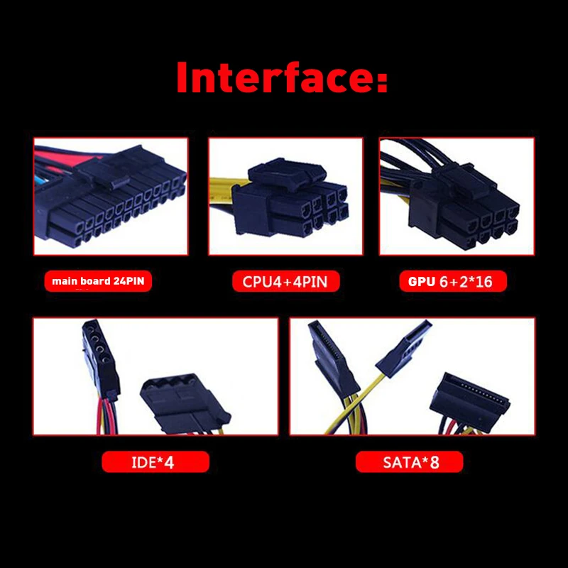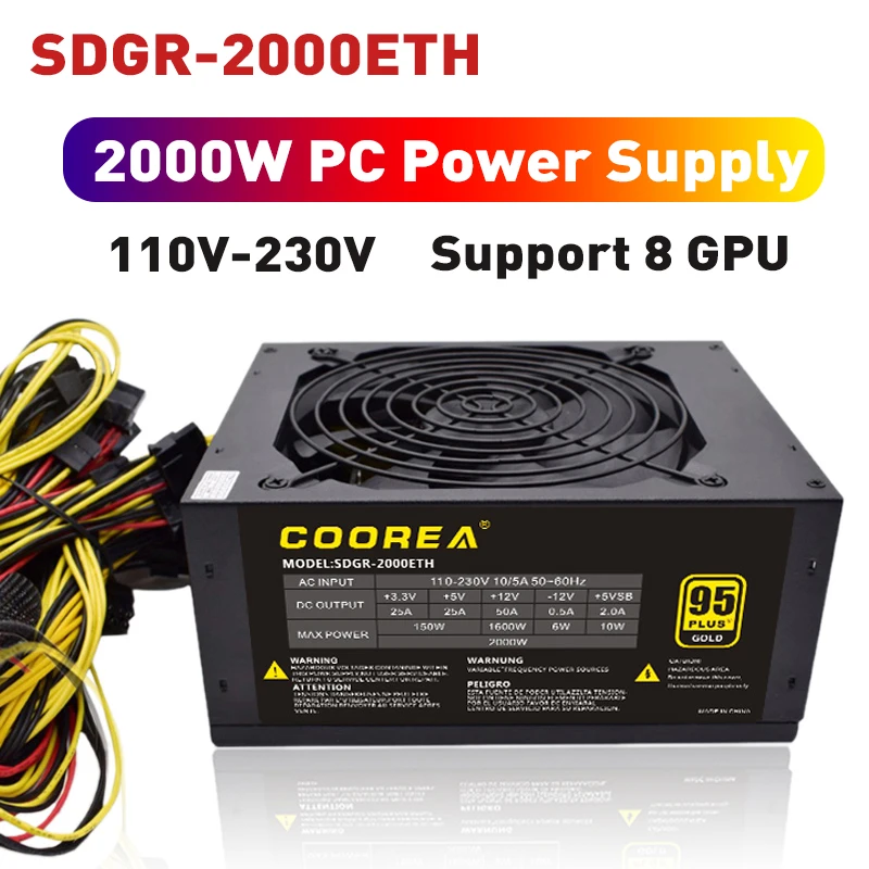 Блок питания для ПК, 2000-110 В, 95 PLUS, Gold ATX, для майнинга биткоинов, с поддержкой 8 GPU, графических карт 4 + 4-контактный процессор, 24 контакта, SATA