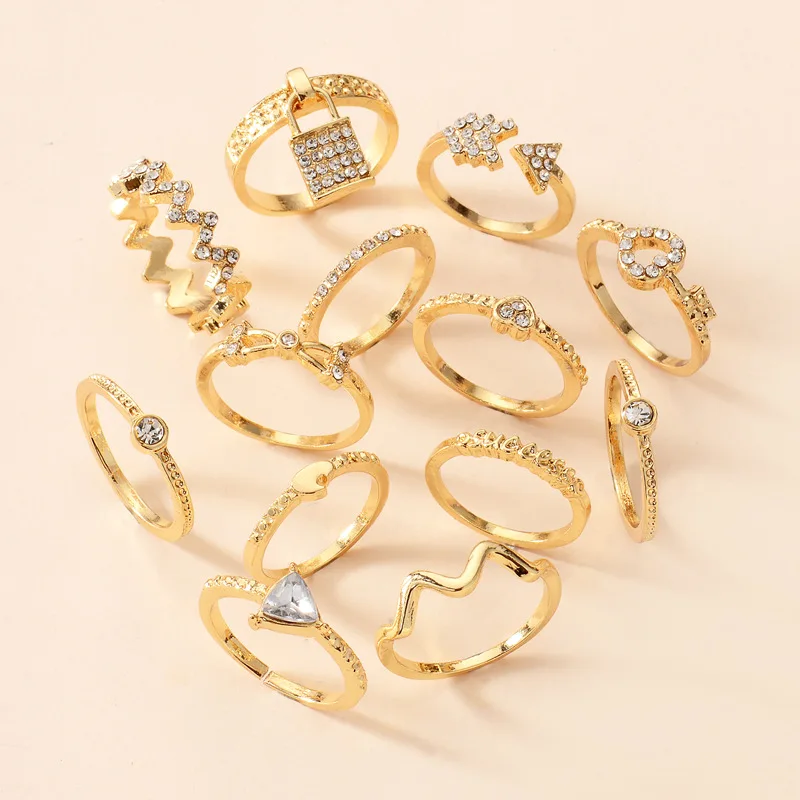 Набор Колец Стразы в стиле ретро, простые кольца в стиле хип-хоп с ...