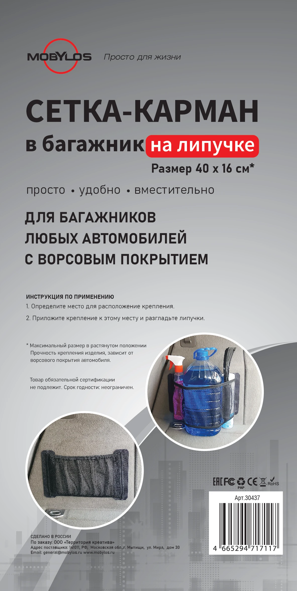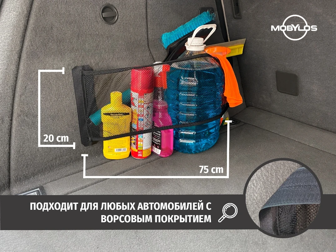 Сетка в багажник на липучке, автомобильный органайзер Mobylos 3043637