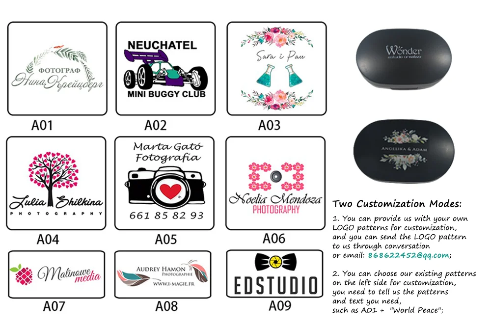 1. Вы можете предоставить нам свои собственные шаблоны логотипа для настройки, и вы можете отправить нам шаблон логотипа через разговор или электронную почту: 869622452@qq.com;