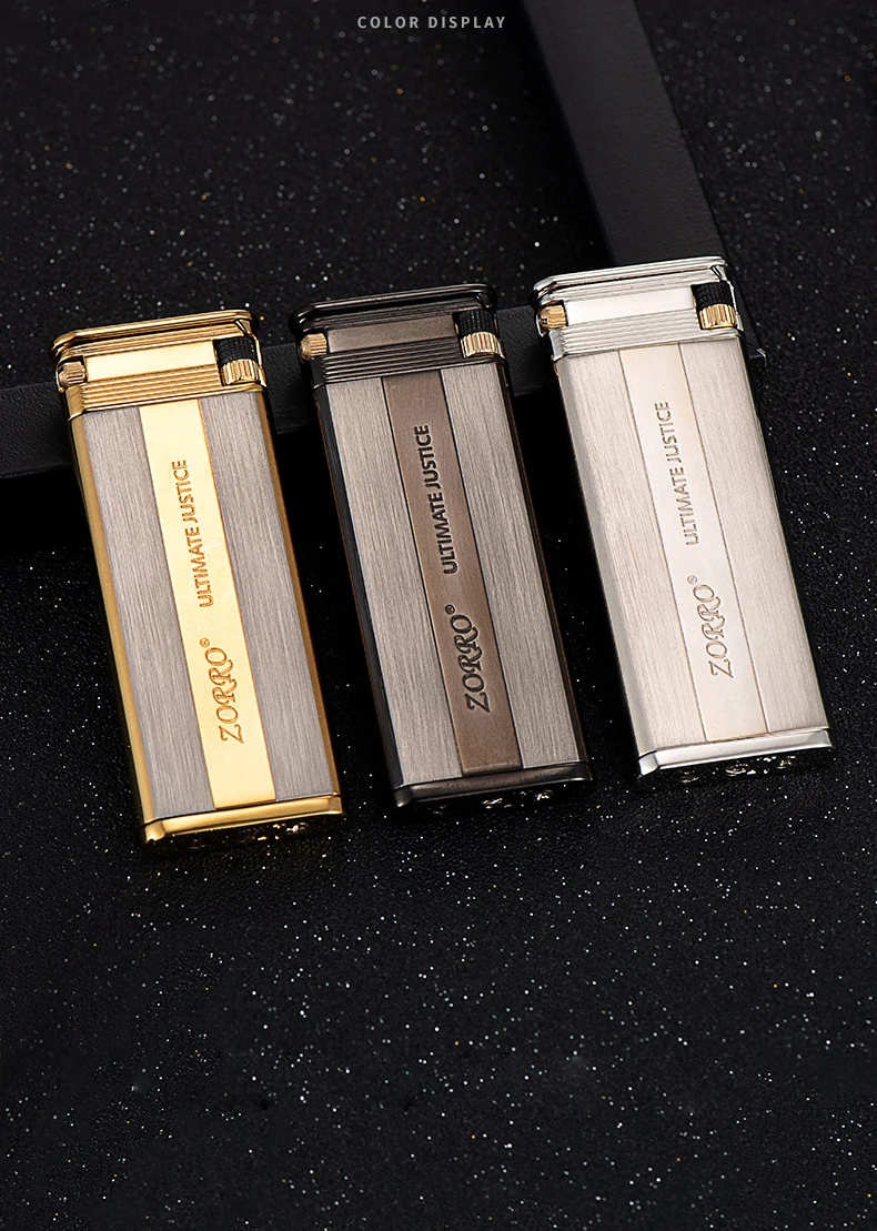 ZORRO ультра-тонкая металлическая сигарета легче, чем газ-Бутан, открытый Пламя зажигалка мини шлифовальный круг зажигалка аксессуары для курения подарок