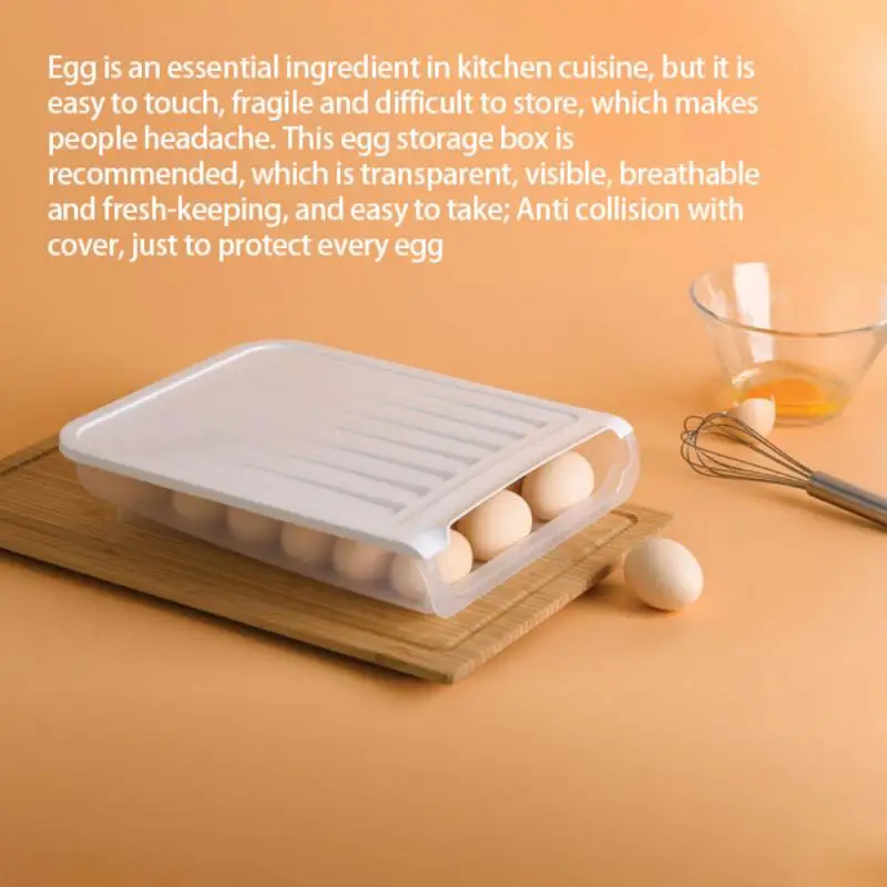 2. Специальная конструкция-используя наклонную конструкцию, остальные яйца автоматически скатываются при вынимании яйца, что упрощает принятие яиц в следующий раз, не нужно вынимать всю коробку из холодильника или снимать крышку