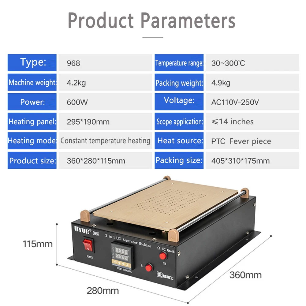 Макс 14 дюймового разделения машина решётная очистка встроенный двойной вакуумный насос для iPad/Samsung планшетный ПК ЖК-разделитель экрана Ремонт UYUE 968 968Q
