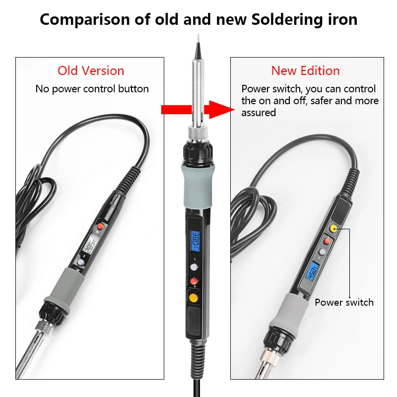 Мы модернизировали Цифровой паяльник, старую версию без выключателя, новая версия имеет переключатель ВКЛ-ВЫКЛ buttton и более convient и safe.
