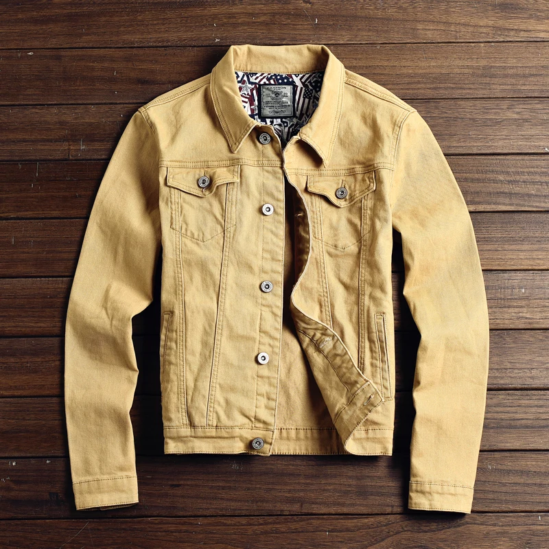 Мужская джинсовая куртка, повседневная приталенная куртка цвета хаки, 2021
