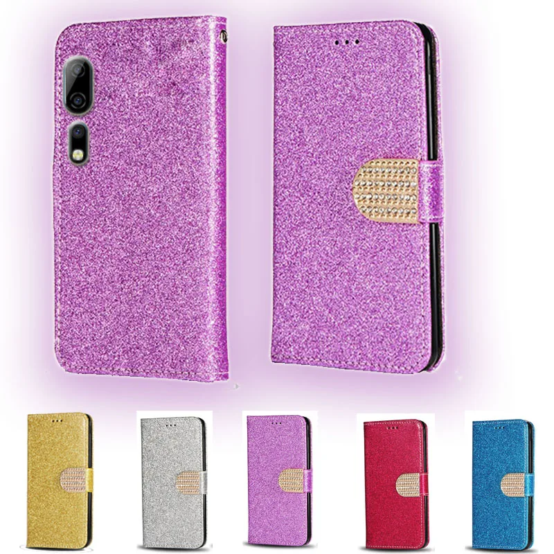 Блестящий Алмазный откидной кожаный чехол-бумажник для телефона Son...