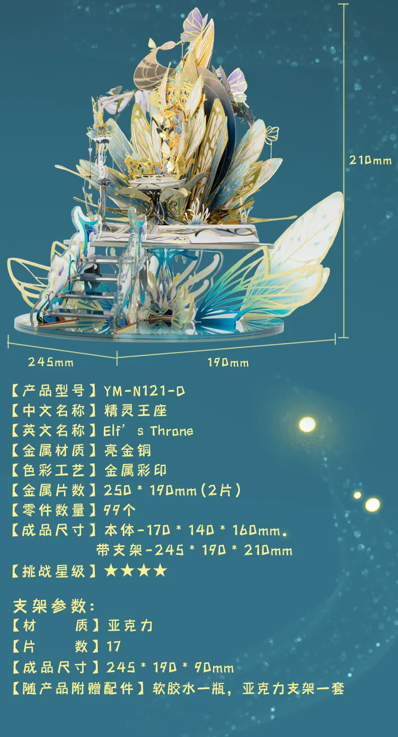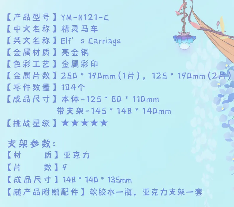 Технические характеристики:Бренд: MUНазвание: карета эльфа 3D металлические модельные комплектыМодель: YM-N121-CМатериал: латуньОтделка Размеры: L 14,5 см x ширина 14,8 см х 14 смЦвет: разноцветныйКоличество листов: 3 шт.