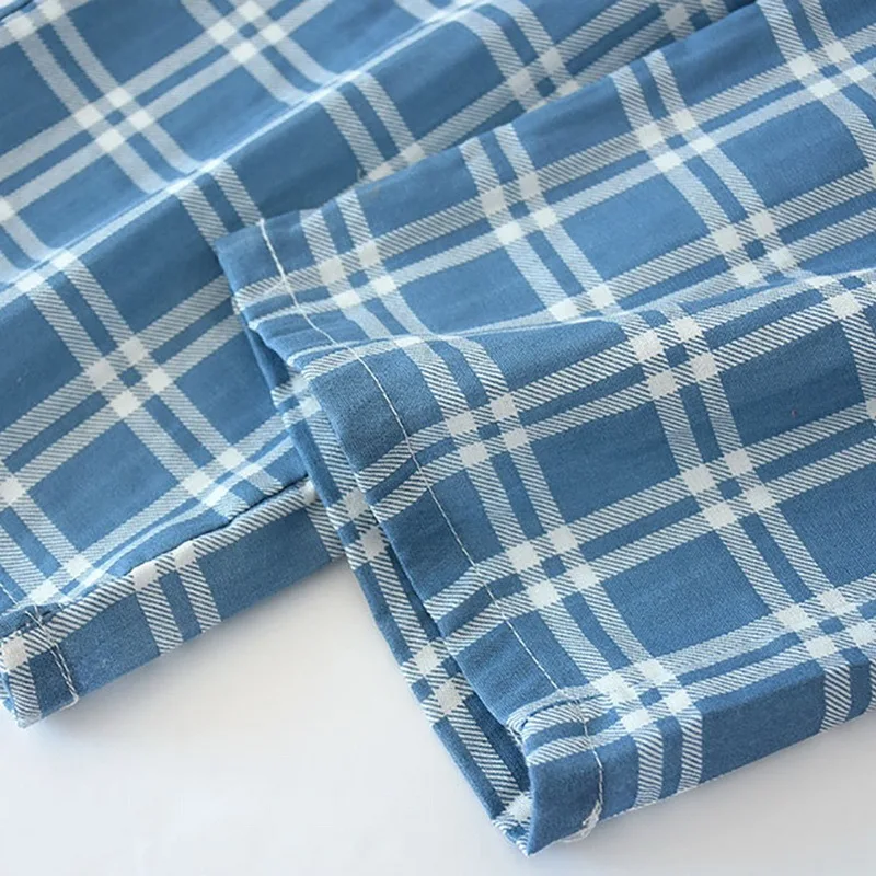 2021 летняя одежда для сна, мужские хлопковые марлевые брюки, клетч...
