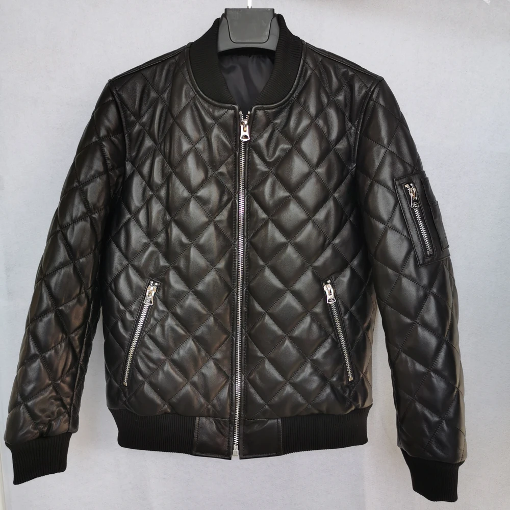 Куртка мужская стеганая из натуральной кожи, теплая клетчатая мягкая овчина, повседневный пиджак, куртка на осень и зиму, DHL