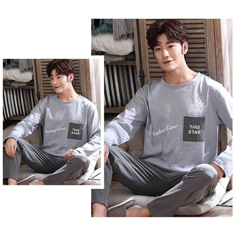 Хлопковый пижамный комплект с длинным рукавом для мужчин, 2021, мил...