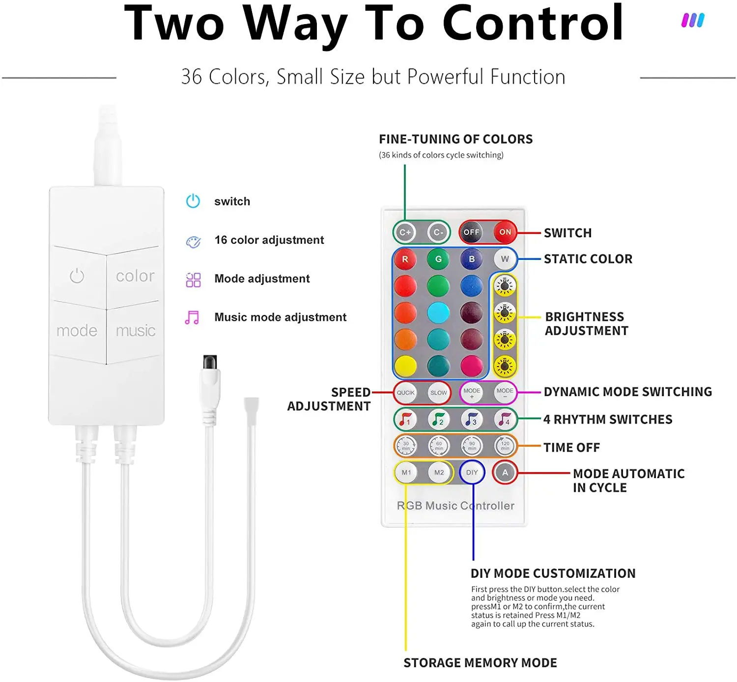 Светодиодная ленсветильник RGB 5050 с 24 клавишами, подсветкой и уп...