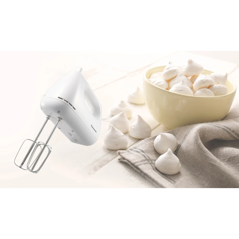 Ручной миксер Panasonic — надежный помощник на кухне. Готовьте с удовольствием!Благодаря наличию 5 скоростей результат готовки будет идеальным.Эргономичная ручка, небольшой вес и правильно рассчитанный центр тяжести позволяют пользоваться миксером, не прилагая усилий.Взбивайте сливки и замешивайте тесто с помощью одного устройства.Прекрасный результат с минимальными затратами времени!Оснащен двумя видами насадок - полностью металлическими, без пластиковых соединений. Используйте венчики для приготовления жидкого теста, кремов и т.д., а взбиватели для теста для замешивании хлеба или лапши.