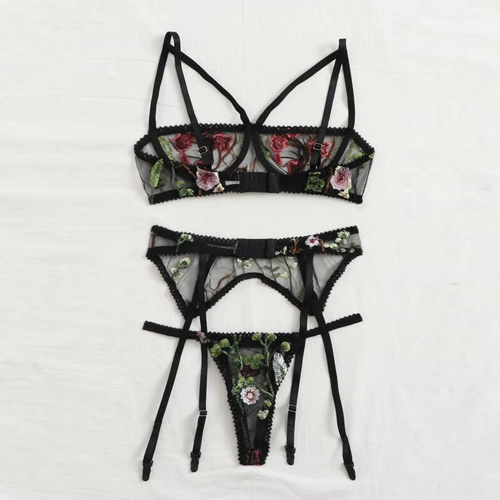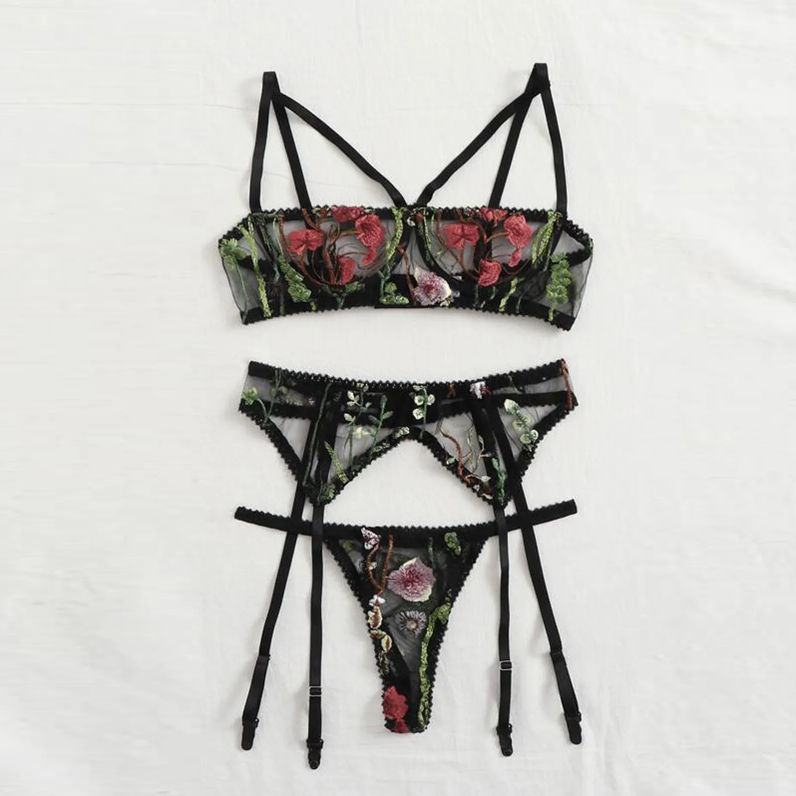 Женское сексуальное соблазнительное Прозрачное нижнее белье, Кружевное боди с цветочной вышивкой, комплект прозрачного бюстгальтера, бикини, 2021