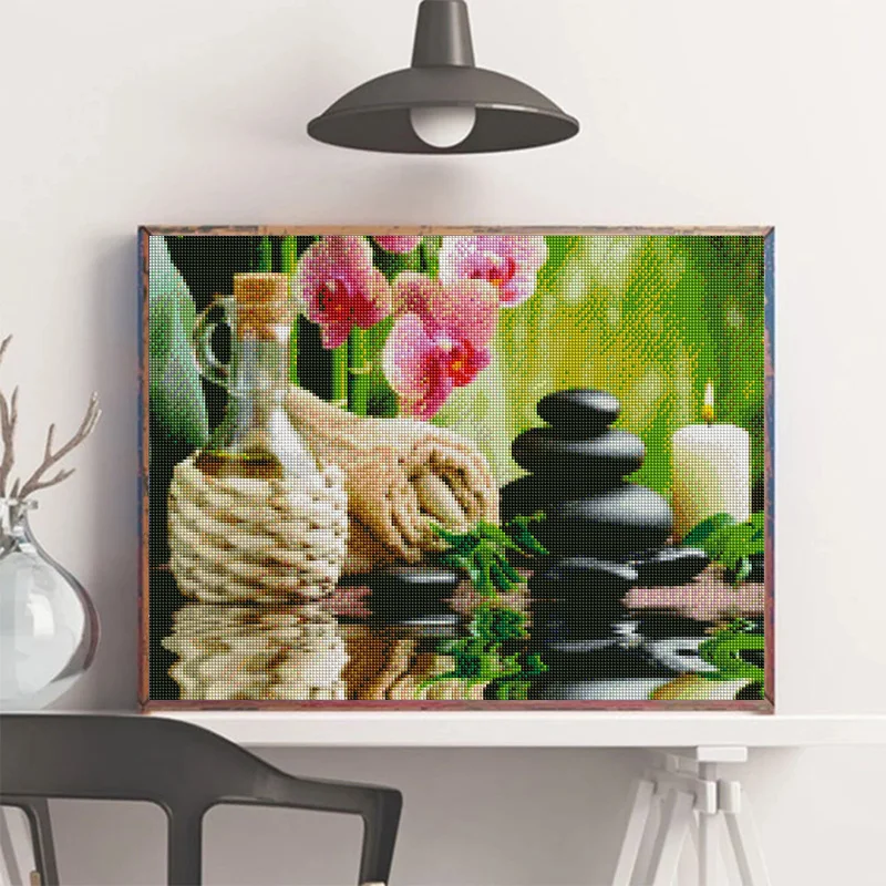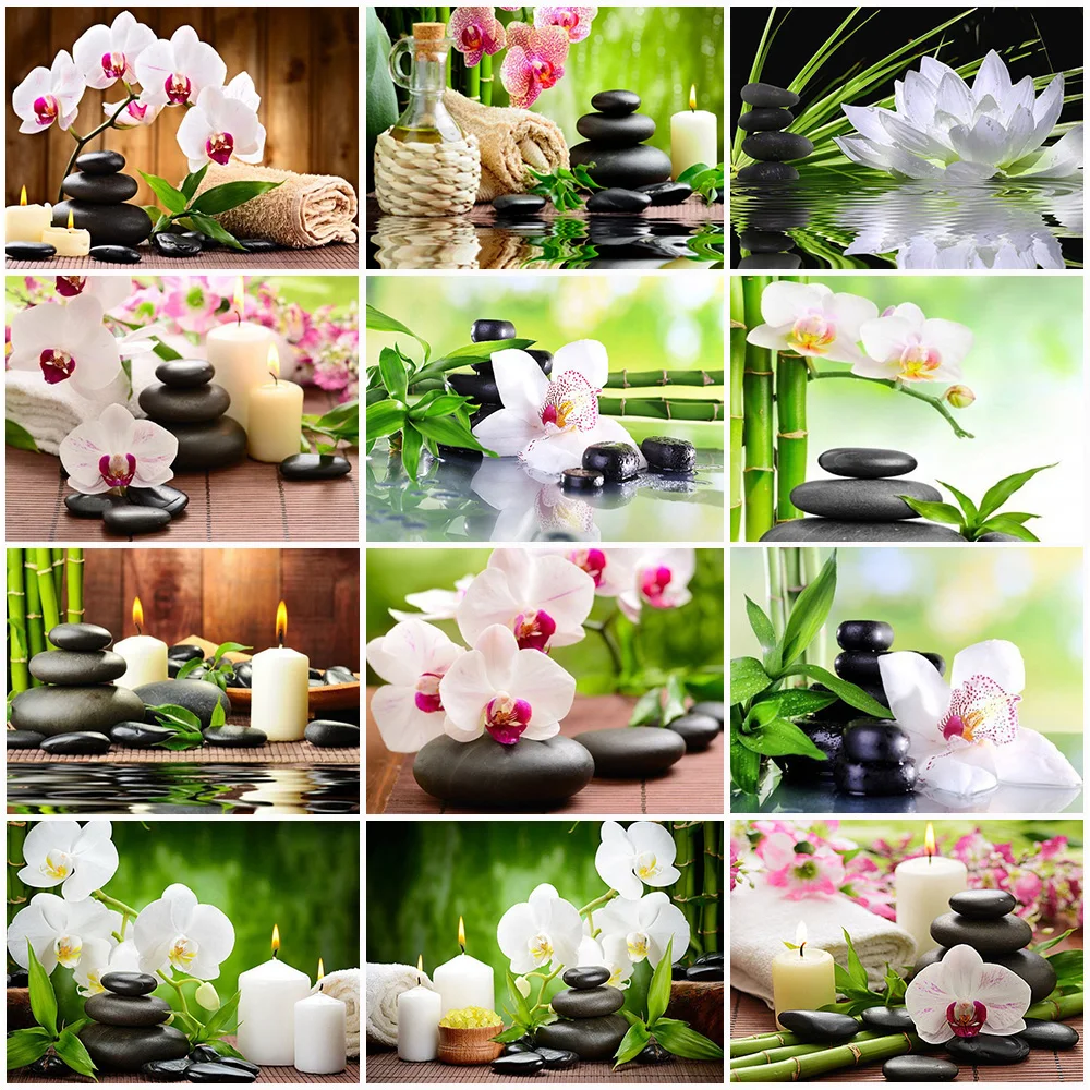 Цветная алмазная живопись AB с орхидеей, каменная свеча, вышивка стразами, цветы, вышивка крестиком, картина, мозаика, домашний декор