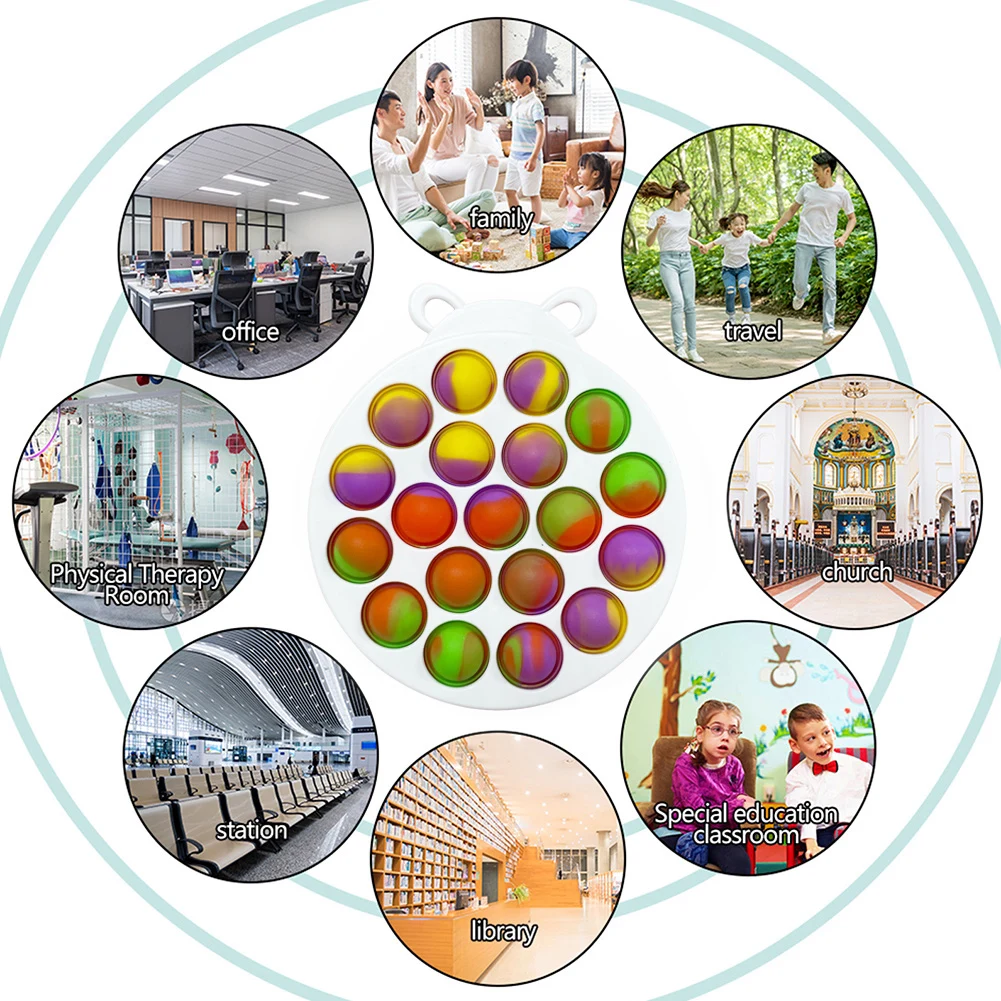 8. Эта игрушечная игрушка-это отличная сенсорная игрушка, вы можете многократно нажимать снова и снова, сверху вверх. Повторяя одно действие, чтобы помочь детям и взрослым в условиях высокого стресса или беспокойства снять стресс и снять стресс, эти игрушки идеально подходят для офисов, домов, церкви, библиотеки, станций, специальные учебные классы, физиотерапевтические и сенсорные комнаты и путешествия.