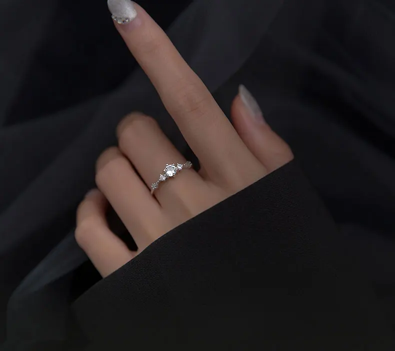MloveAcc твердого стерлингового серебра 925 простой прозрачный CZ кольца для женщин и девочек; Классические тонкие туфли свадебные крупное колье, хорошее ювелирное изделие, подарок