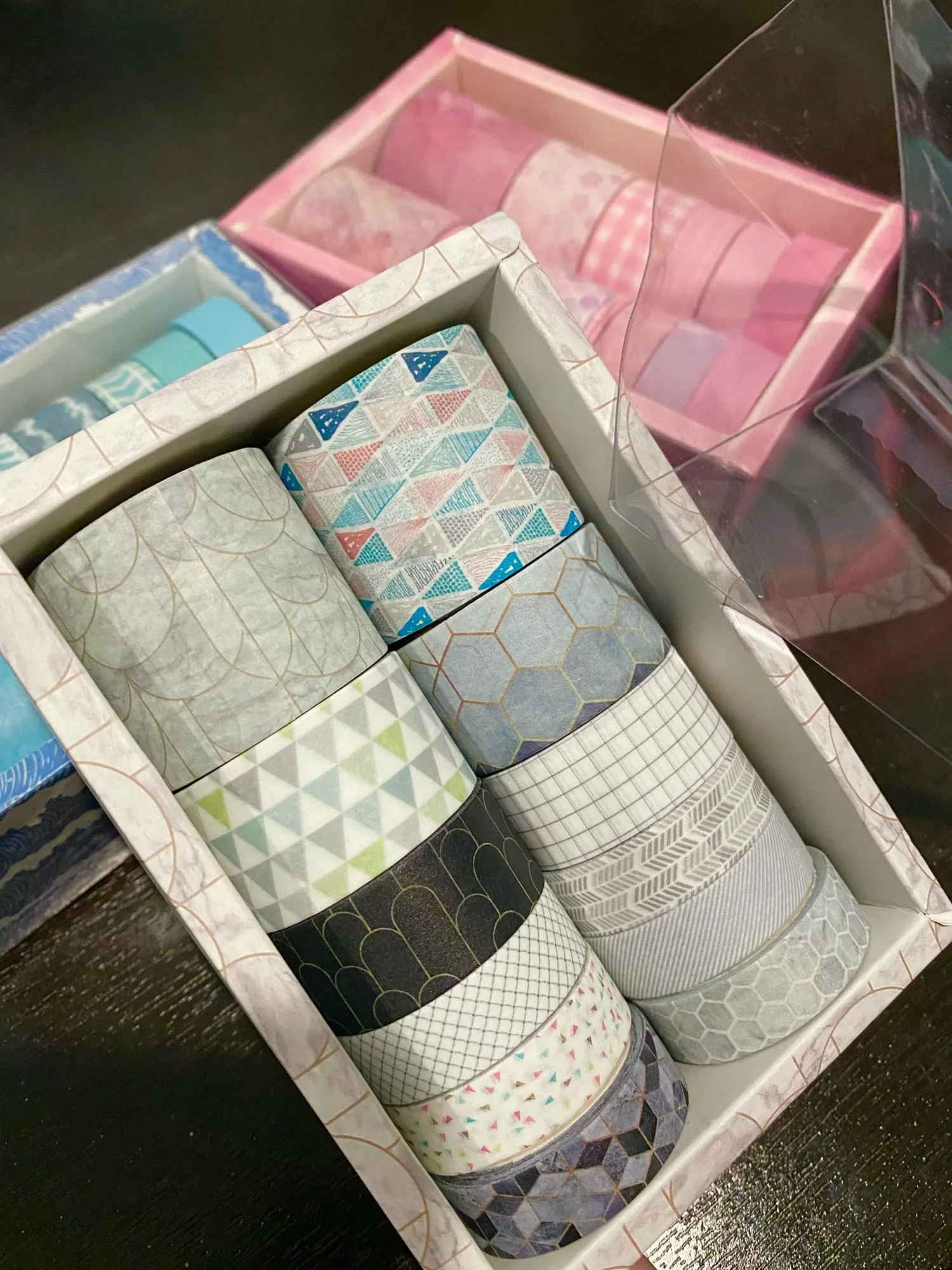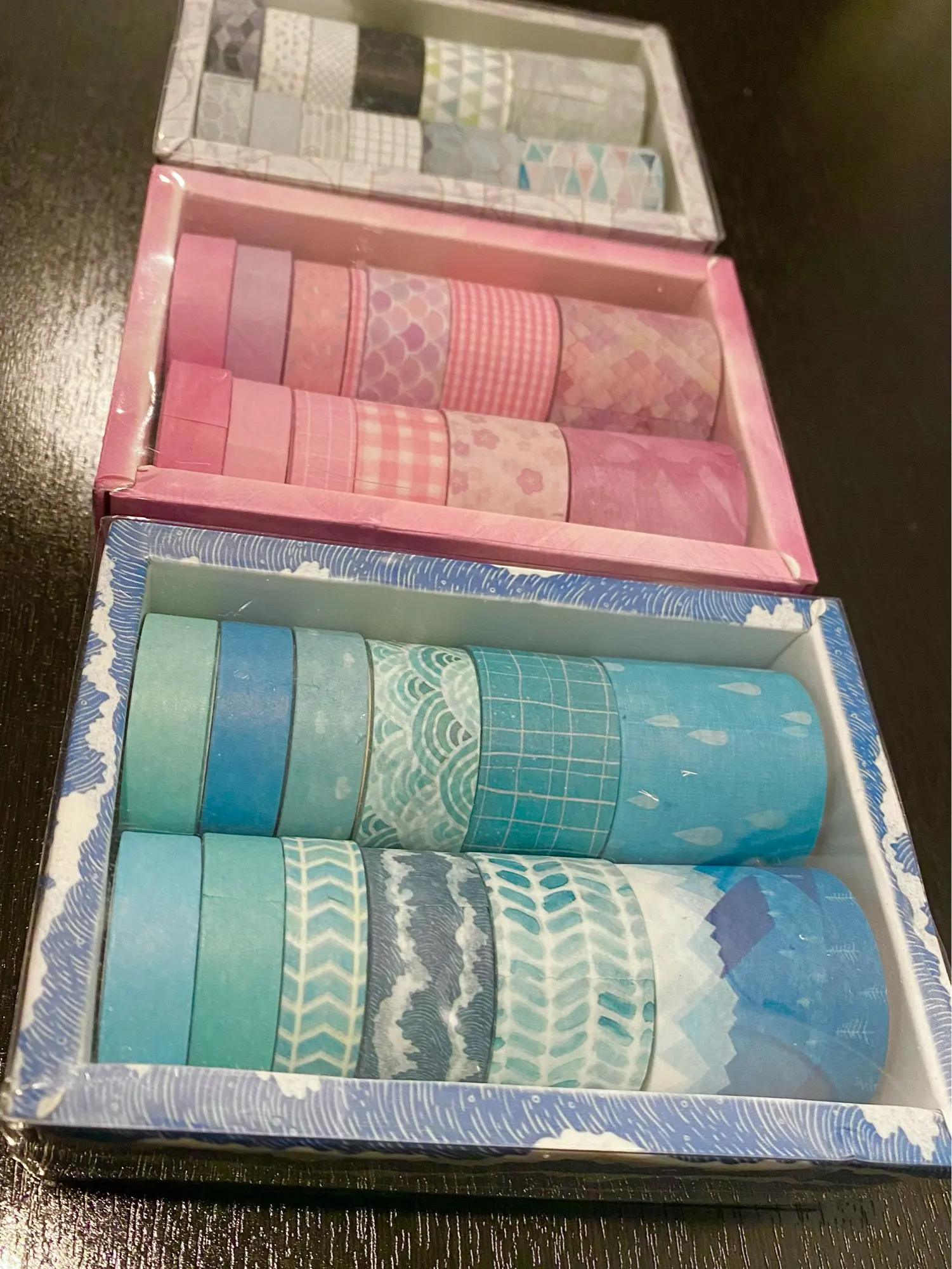 Мне это нравится! Я заказал 3 цвета, и все они идеальны, как указано. Они прилипают так, как вы ожидали от Васи-ленты, очень хорошо на бумаге, но все еще снимаются, и цвета Действительно милые и милые! Я добавила вам фотографии для просмотра. Кроме того, маленькие бумажные коробки, которые поставляются в наборе, на удивление прочны и поставляются с прозрачными чехлами, чтобы вы могли держать их там, если вам нравится. Я так рад, что заказал больше одного из них!
