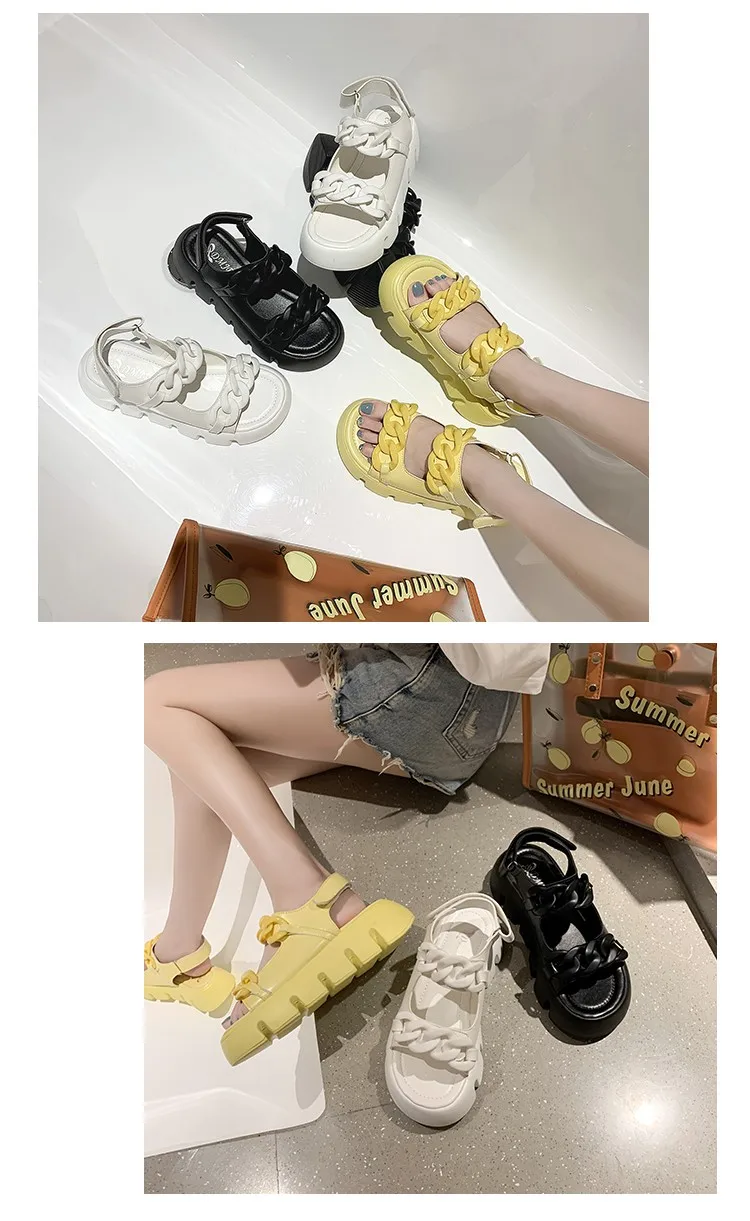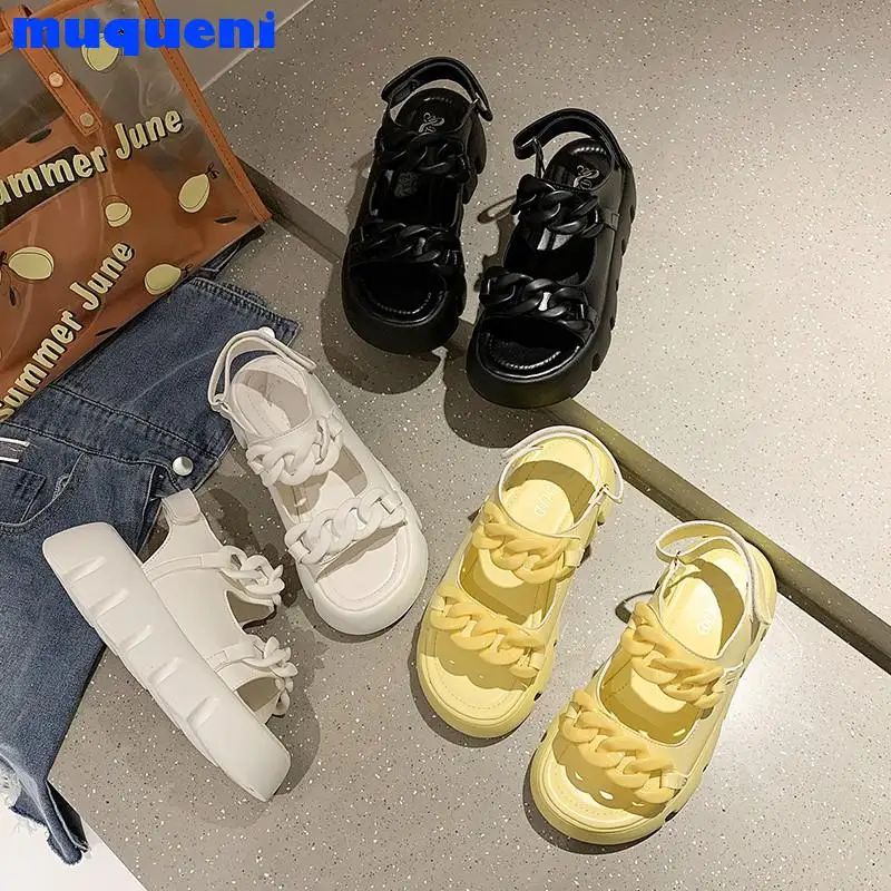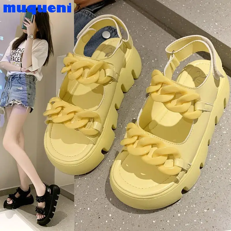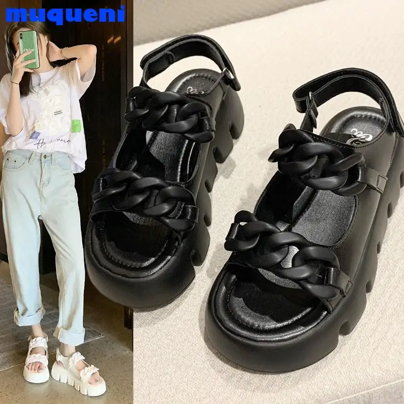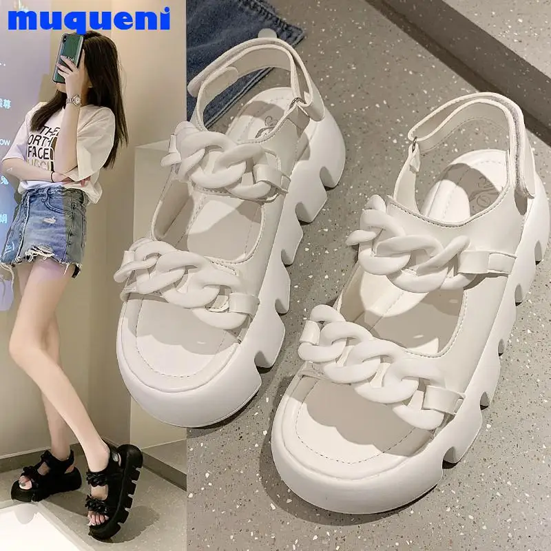 2021 женские летние сандалии на танкетке в стиле ретро с римскими цепочками; Zapatos De Mujer Plataforma Sadalias Femininas