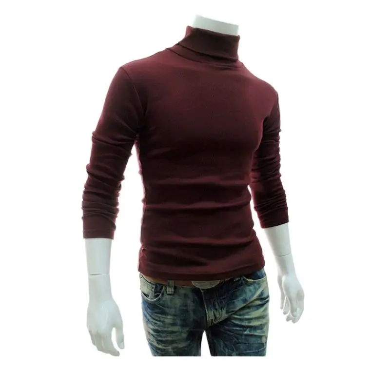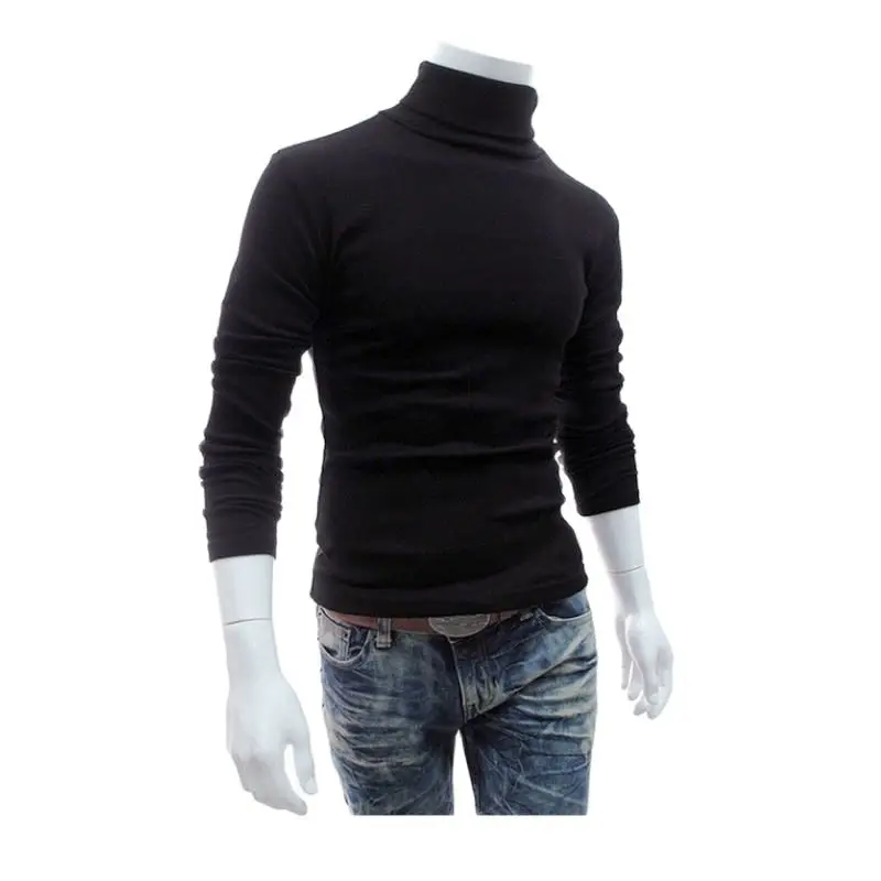 Новинка 2021, осенне-зимний мужской свитер, Мужская водолазка, однотонный Повседневный свитер, мужские облегающие брендовые вязаные пуловеры