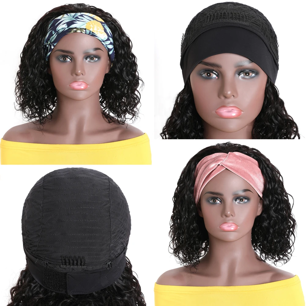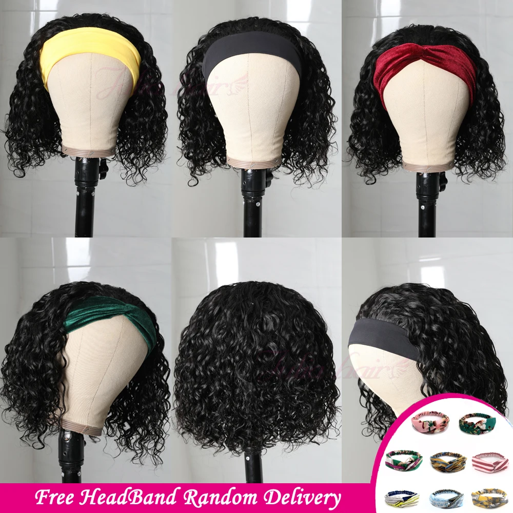 Короткий боб парик с головной повязкой с холодной завивкой 10-14 дюймов короткие волнистые синтетические волосы парики с головной повязкой, шарф парики