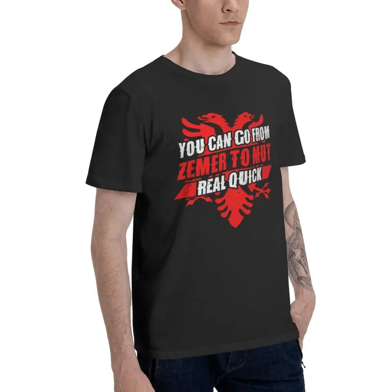 Албанский Орел футболка Для мужчин Уличная Футболка короткий рукав 100% хлопок, с надписью I Love Албания футболка городской футболки, топы