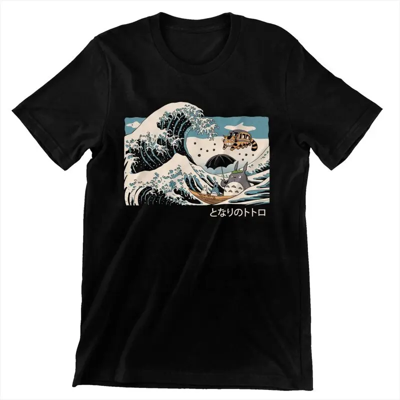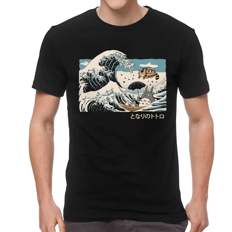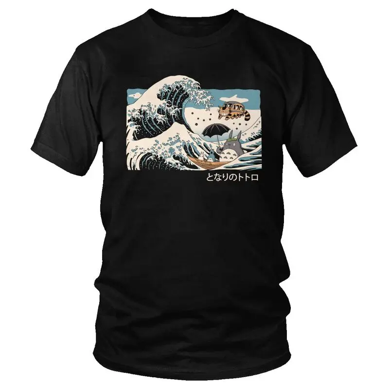 Футболка мужская с японским аниме Мой сосед Тоторо, хлопковая тенниска с коротким рукавом, топ с принтом Великой волны канагава, модная рубашка