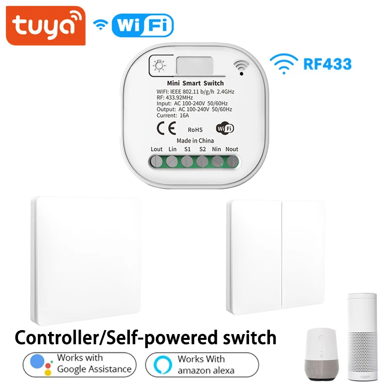 16A Tuya Wifi FR 433 МГц умный переключатель 1/2 способ управления, без батареи умный дом автономный выключатель, работает с Alexa Google Home