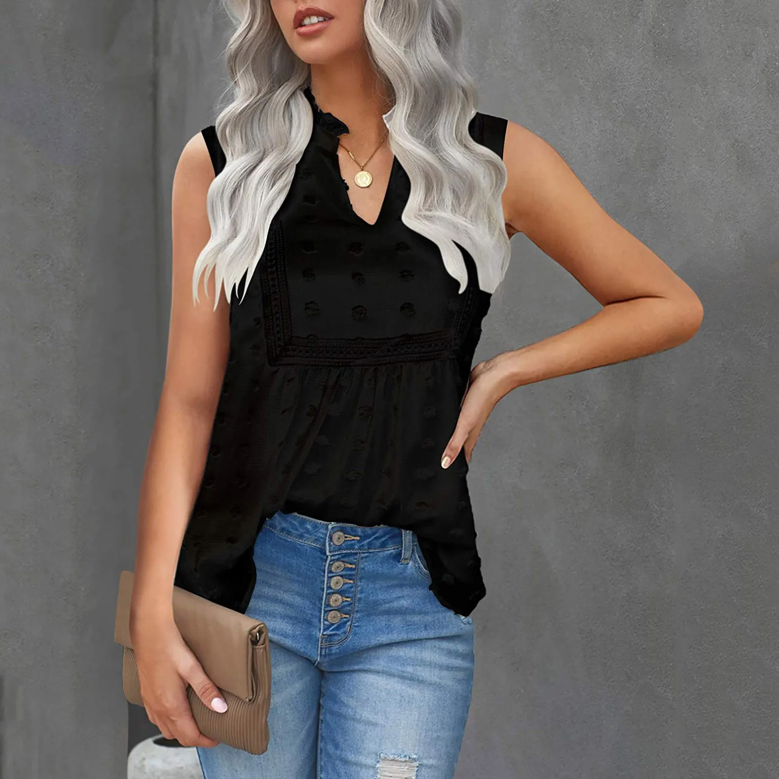 Блузка женская в богемном стиле, топ без рукавов, в горошек, с цвет...
