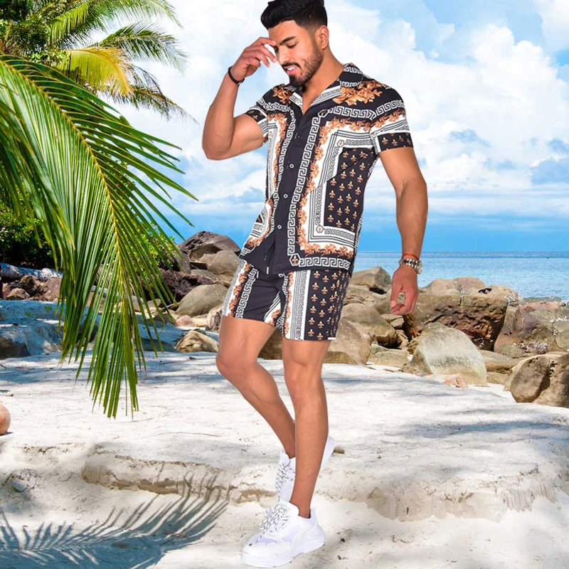 Мужской комплект из 2 предметов, Повседневная дышащая рубашка с коротким рукавом и гавайским принтом, пляжный костюм для отдыха, уличная одежда, лето S-3XL
