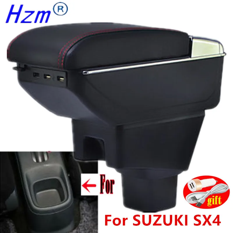 Подлокотник для SUZUKI SX4, для SUZUKI SX4 2006-2018, внутренние детали автомобиля, коробка для хранения запасных частей с USB светодиодный дом