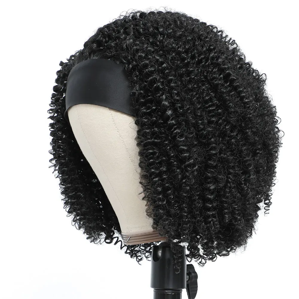 Афро кудрявые парики с повязкой на голову 180% парики на каждый день для чернокожих женщин синтетические волосы парики полностью машинные парики