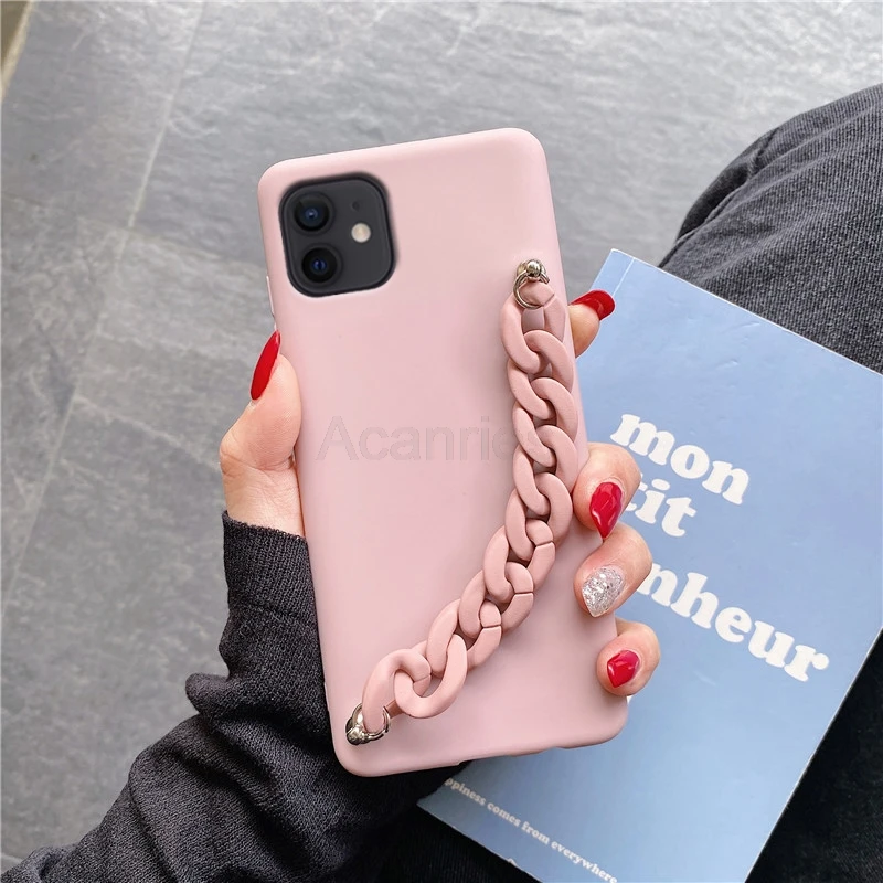 Featuressilicone candy color simple matte bracelet chain wrist strap case