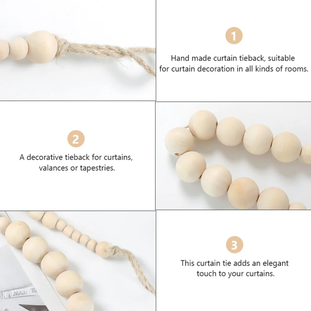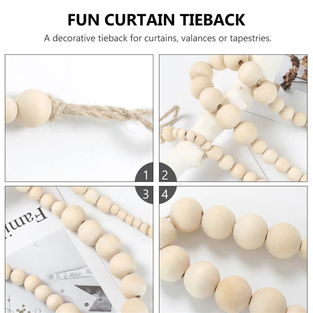 2 шт., многофункциональные Завязки для штор с деревянными бусинами