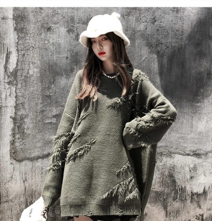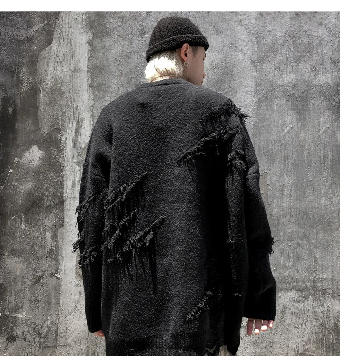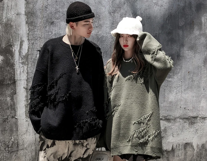 Уличная одежда в стиле хип-хоп, Мужская трикотажная одежда в стиле Харадзюку, осенний винтажный однотонный вязаный свитер, пуловер оверсайз в стиле унисекс