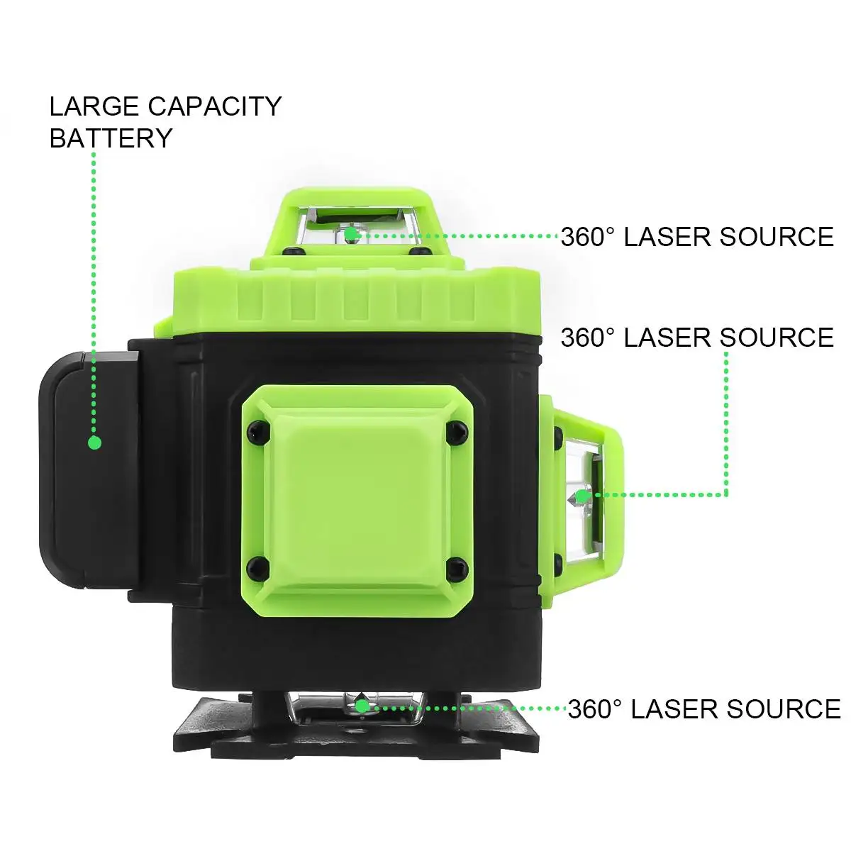 Особенности:-Точное измерение и более удобное в использовании.-4D 16/12/8 облучение линии, 360 ° без мертвого угла.-Crashworthy и анти-стук, 4D мягкая резина одетая, crashworthy и анти-стук.-± 3 ° автоматическая функция самовыравнивания. Звуковое предупреждение при превышении диапазона автоматического выравнивания.-Линия 8/12/16 может быть необязательной, подходит для различных случаев для удовлетворения различных инженерных потребностей.-Международный стандарт IP54 Водонепроницаемый и пыленепроницаемый, многократная защита, длительный срок службы в суровых условиях.-Внутренний и открытый универсальный, высокая яркость зеленый, внутри и снаружи четко, Дальняя проекция расстояния, высокая Лазерная высота, четкие линии.-Аккумулятор большой емкости 3000 мАч с более длительным сроком службы, длительным сроком службы, временем работы в режиме ожидания более 72 часов, рабочее время может длиться 4-8 часов.