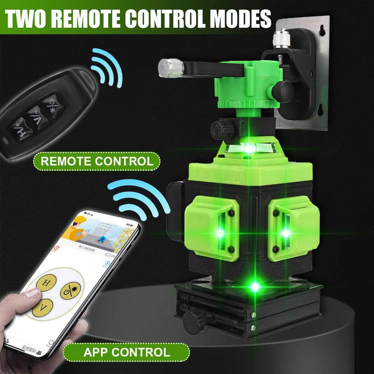 Мощный лазерный уровень, горизонтальный и вертикальный самонивелирующийся 4D 4D 16 линий с регулировкой 360 градусов, с европейской вилкой и управлением через приложение