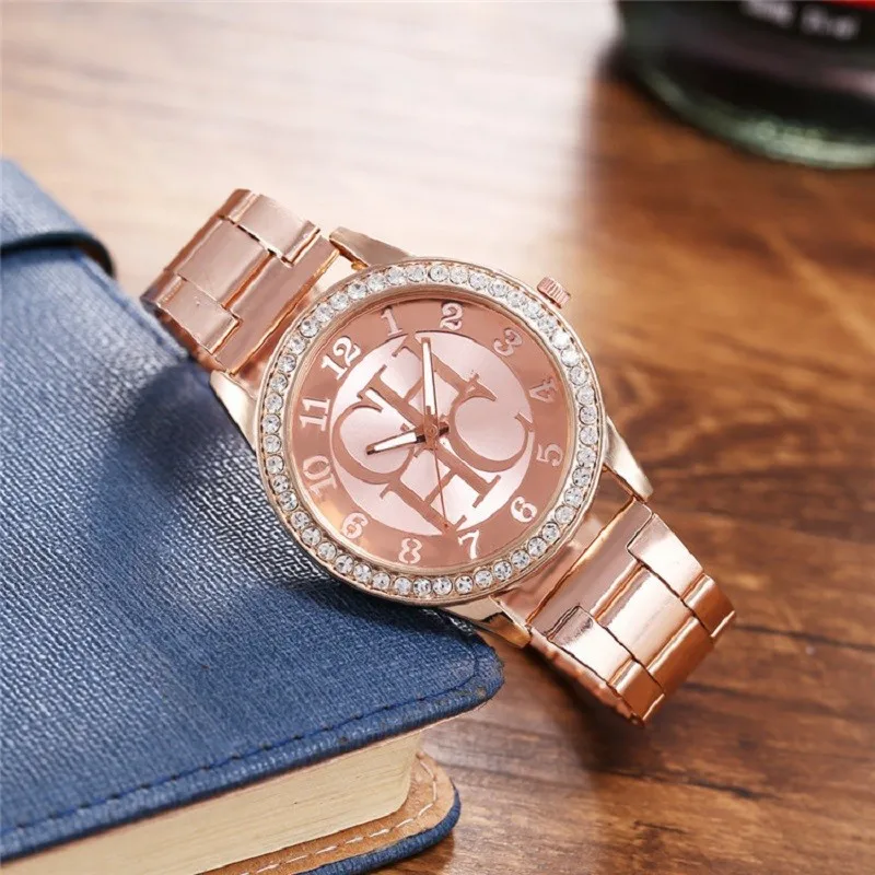 Новинка 2021, дизайнерские Роскошные брендовые модные повседневные женские часы Ch, роскошные спортивные кварцевые часы с золотым циферблатом из нержавеющей стали и стальным ремешком