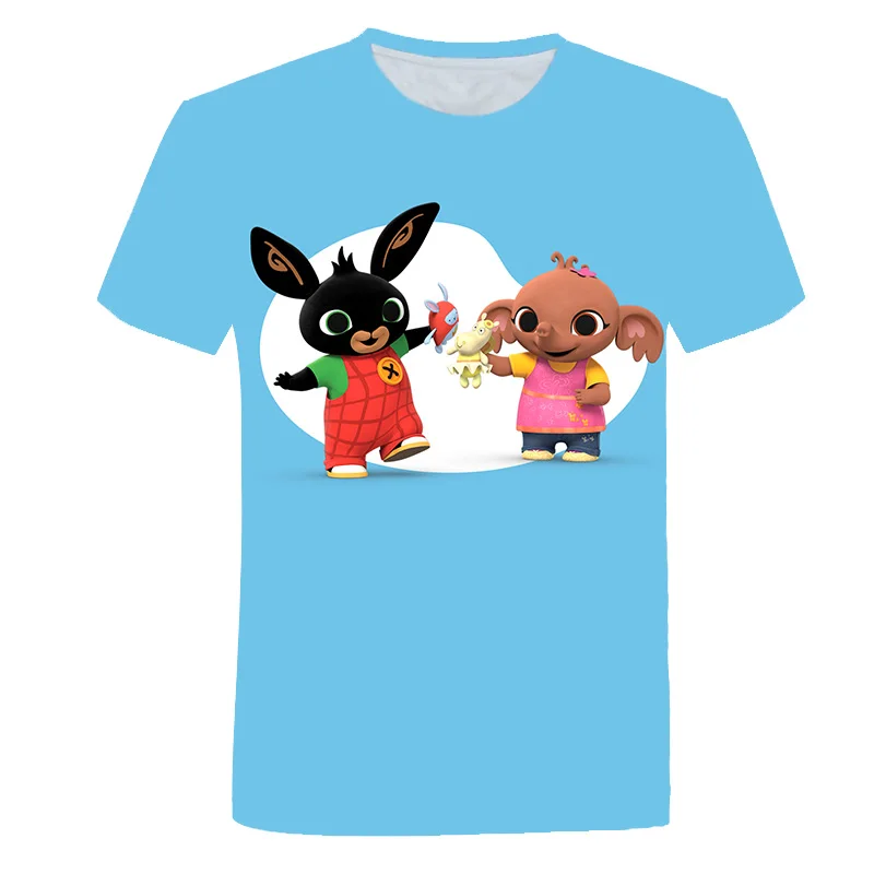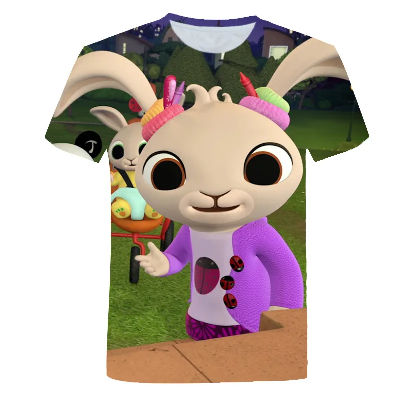 Милая Детская одежда Bing 4-14, футболка для мальчиков и девочек, футболка с мультяшным принтом кролика, Детская летняя футболка